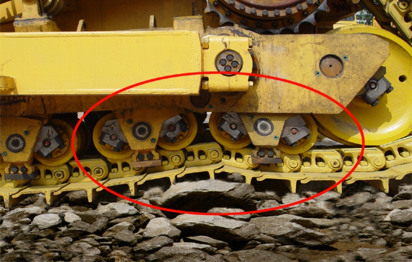 行走系統(tǒng)采用彈性懸掛使履帶柔性接地受力均勻,可以吸收地面沖擊,減小了傳至底盤的沖擊載核